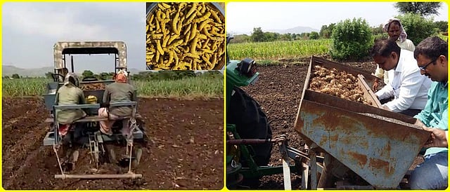 उत्पादन एकरी सरासरी ७५ हजार रुपयांपासून ते एक लाख रुपयांपर्यंत खर्च येतो. एकरी सरासरी २५ ते ३० क्विंटल उत्पादन मिळते. गायकवाड यांनी ३५ ते ३८ क्विंटलपर्यंतही उत्पादन घेतले आहे. दरवर्षी पीक असल्याने बियाण्यावरील खर्चातही बचत होते. हळदीचे मूल्यवर्धन जिल्ह्यातील काही शेतकरी सेंद्रिय पद्धतीने हळद उत्पादनाचा प्रयत्न करताहेत. मात्र हे प्रमाण कमी आहे. जाणकारांच्या मते एकूण लागवडीपैकी दहा टक्के हळद पावडर तयार करून विक्री केली जाते. चांगल्या प्रकारे ‘पॅकिंग’ व ब्रॅंडिग केल्यास ग्राहकांकडून मागणी येत आहे. बाजारपेठ व दर मागील तीन ते चार वर्षांचा विचार केल्यास सरासरी सात ते आठ हजार रुपये प्रति क्विंटल रुपये दर राहिले आहेत. शेतकऱ्यांनी हळद बाजारात आणावी यासाठी व्यापाऱ्यांकडून वेगवेगळे फंडे वापरले जातात. बाजारात हळद कमी येत असल्यास एखाद्या शेतकऱ्यास उच्चांकी दर दिला जातो. यावर्षी वाई बाजार समितीत कमाल २९ हजार रुपये इतका विक्रमी दर नाममात्र शेतकऱ्यांना मिळाला. वाई व सांगली येथील बाजार समितीत सर्वाधिक विक्री होते. पावडरची विक्री पुणे व मुंबई येथे होते. हळदीचे दर घसरतात त्या वेळी शेतकऱ्यांकडून ‘वेअर हाउस’चा वापर केला जातो. शेतकरी प्रतिक्रिया सरकारने हळद निर्यातीस चालना दिली पाहिजे. शेतकऱ्यांचा माल शेतात उत्पादित होत असल्याने त्यावर ‘जीएसटी’ घेतला जाऊ नये. - राजेंद्र गायकवाड, ९९२३९१८०८५ मजुरांद्वारे हळद लागवडीत वेळ, पैशांचा मोठी अपव्यय व्हायचा. त्यावर पर्याय म्हणून लागवड यंत्र सात वर्षांपूर्वी तयार केले आहे. त्याद्वारे लावण, खते देणे आदी कामे एकाच वेळी करणे शक्य झाले आहे. - अशोक चिवटे, ९४२३२६४८८८ कृषिभूषण सेंद्रिय शेतकरी (किन्हई, ता. कोरेगाव) हळदीच्या दरांतील अस्थिरतेमुळे त्यात मिरची, गवारी, भेंडी, पालेभाज्या यांची आंतरपिके घेतो. हळद काढणीनंतर मार्चच्या दरम्यान ऊस घेतो. हे ‘रोटेशन’ अनेक शेतकऱ्यांना फायदेशीर ठरले आहे. - अजित ससाणे, ९४५९०११९५२ प्रगतिशील शेतकरी, कवठे, ता. वाई मी सेंद्रिय हळद करत असून, एकूण उत्पादनापैकी ६० टक्के पावडर तयार करून माउली टेड्रर्स या नावाने पॅकिंग करून पुणे येथे विक्री करतो. हळदीस मिळणाऱ्या दराच्या जवळपास दुप्पट दराने पावडरची विक्री होते. - चंद्रसेन बाबर, किकली, ता. वाई ७०८३१९९१८७