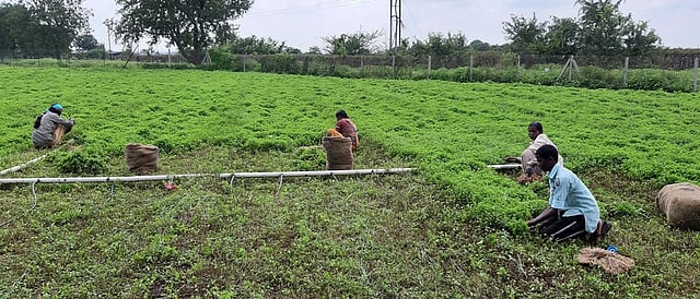पुदिना पिकातील जोखीम काय? पुदिन्याला तशी वर्षभर मागणी असते. मात्र पावसाळा काळात दर अधिक मिळतात. काही वेळा व्यापाऱ्यांकडून पुदिना पाठवू नका, असेही सांगण्यात येते. अशा वेळी संपूर्ण प्लॉट वाया जातो. आर्थिक मोठे नुकसान होते. नाशिक हे या पिकासाठी कमी आवकेचे मार्केट असल्याने तेथे माझाच माल जास्त प्रमाणात गेला तर अन्य शेतकऱ्यांचे नुकसान होऊ शकते. त्यामुळे तेथे विकण्यावर भर नसल्याचे रवी यांनी सांगितले. कुटुंब केंद्रित कामाचे नियोजन : रवी व पत्नी तनुजा हे दोघे संपूर्ण शेतीची जबाबदारी सांभाळतात. रवी स्वतः वाणिज्य शाखेचे पदवीधर आहेत. सन १९९१ मध्ये एमकॉमची पदवी संपादन केल्यांनतर त्यांनी नोकरीचा शोध घेतला. बँकेची परीक्षा केवळ एक मार्काने ते अनुत्तीर्ण झाले. पण मग खचून न जाता आपल्या ज्ञानाचा उपयोग शेतीत करायचे ठरवले. त्यात वेगवेगळे प्रयोग शेतीत केले. त्यामुळे प्रयोगशीलता रुजत गेली. तनुजा या मूळच्या मुंबईच्या असल्याने त्यांना शेतीचा कुठलाही अनुभव नव्हता. मात्र त्यांनी सर्व शेती कामे शिकून पतीला मोठा हातभार लावला आहे. खते, रोग-कीड नियंत्रण, विक्री व्यवस्था ही जबाबदारी रवी सांभाळतात. तर मजूर व्यवस्थापन, कापणी, प्रतवारी ही जबाबदारी तनुजा पाहतात. वेळेवर गतीने व स्वयंपूर्ण अशी कामाची पद्धत दांपत्याने विकसित केली आहे. सिंचनाची व्यवस्था पाण्याची टंचाई जाणवत असल्याने द्राक्षबाग तोडावी लागली. मात्र पाण्याचा स्रोत वाढविण्यासाठी विहिरीचे खोलीकरण केले. सुमारे ७० फुटांपर्यंत विहीर खोल केल्याने पाणीसाठा वाढला. पाण्याचा कार्यक्षम वापर करण्यासाठी संपूर्ण क्षेत्रावर इनलाइन ठिबकची व्यवस्था केली आहे. कष्टातून कुटुंबाला दिला आकार अत्यंत कष्ट अन् जिद्दीतून रवी यांनी शेती व्यवसाय प्रयोगशीलतेतून पुढे नेला. वर्षभरात सात वेळा मिळत असलेल्या उत्पन्नाचे योग्य आर्थिक नियोजन त्यांनी केले. कौटुंबिक गरजा, शेती खर्च याचबरोबर मुलांच्या शिक्षणासाठी त्यांनी वेळोवेळी बचत केली. आपल्या दोन्ही मुलांना इंजिनिअर घडविण्यासाठी ते प्रयत्नशील आहेत. शेतीसह संपूर्ण कुटुंबाला त्यांनी आकार दिला आहे. संपर्क : रवी करंजकर- ९८२२५३३३१४