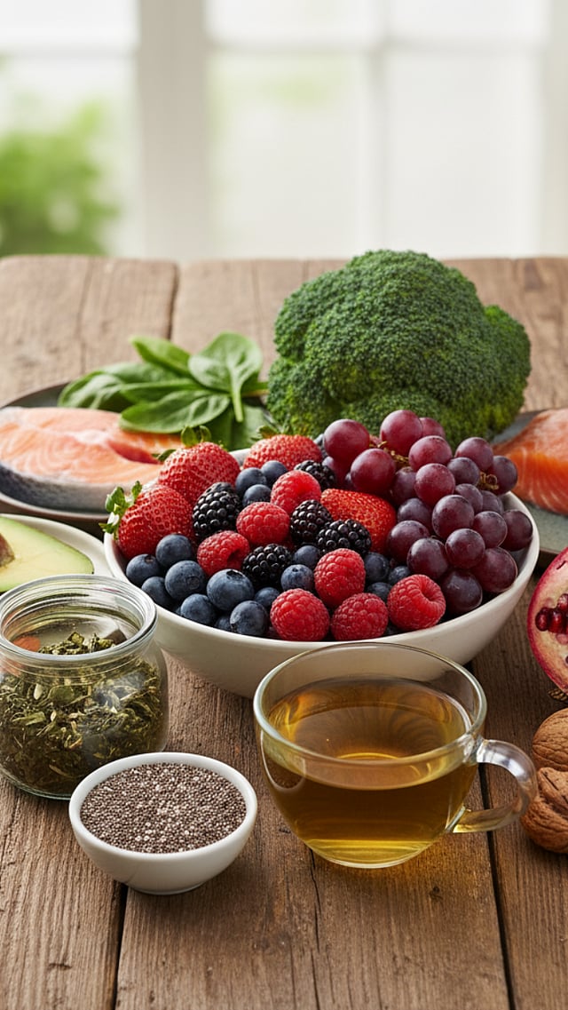 ब्लूबेरी, स्ट्रॉबेरी आणि रास्पबेरी यांसारख्या बेरीजमध्ये अँटिऑक्सिडंट्स मुबलक असतात. यामुळे त्वचेची झीज कमी होऊन ती तरुण आणि तजेलदार राहते.