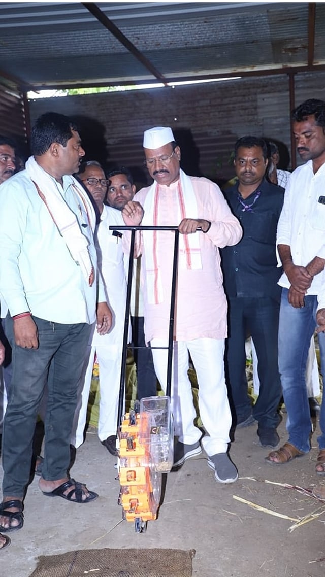 अमृत व्यंकटी केंद्रे यांनी खरीप हंगामासाठी जपून ठेवलेले घरचे बियाणे तसेच ते पेरणीसाठी वापरत असलेले आधुनिक तंत्रज्ञानाची पाहणी करून याबाबत माहिती सत्तारांनी घेतली.