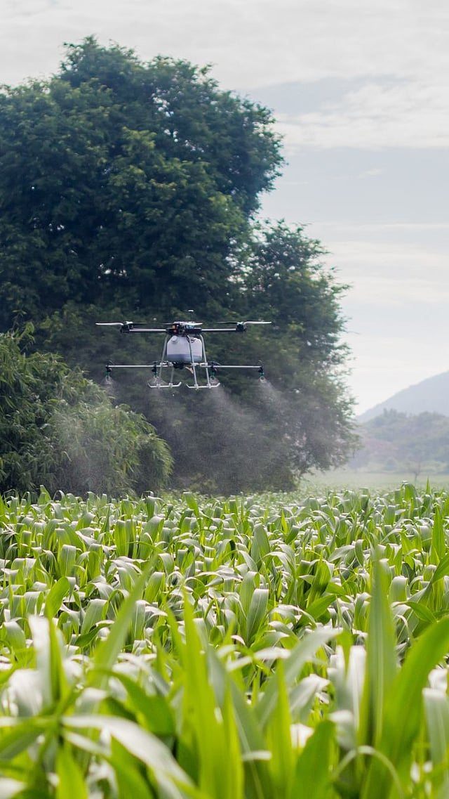 ड्रोन तंत्रज्ञानाला मानवरहित हवाई वाहने (यूएव्ही) म्हणतात. डेटा गोळा करणे, पीक निरीक्षण आणि फवारणीसाठी हे तंत्र फायदेशीर आहे.