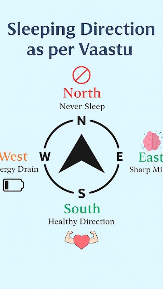 वास्तुशास्त्र आणि आरोग्यशास्त्रानुसार झोपताना डोके दक्षिण दिशेला असणे सर्वात उत्तम मानले जाते.