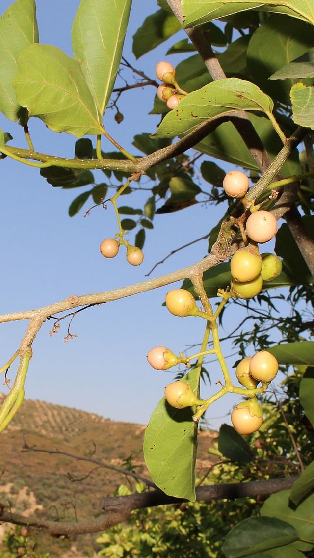 पक्व फळे आकाराने स्थानिक बोराएवढी, बेचव, चिकट व फिक्कट गुलाबी रंगाची असतात.