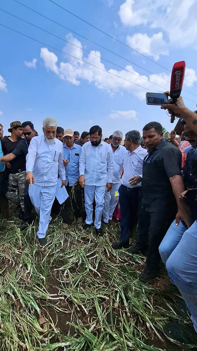 पीक नुकसानीच्या पाहणीसाठी मुख्यमंत्री एकनाथ शिंदे थेट शेतकऱ्यांच्या बांधावर पोहचले.