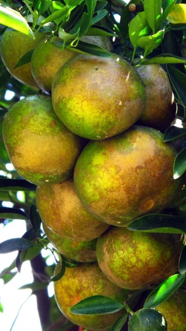 पानांच्या शिरांमधील भाग पिवळा होतो, फळं लहान राहतात, रस कडवट होतो आणि झाडं हळूहळू सुकायला लागतात.