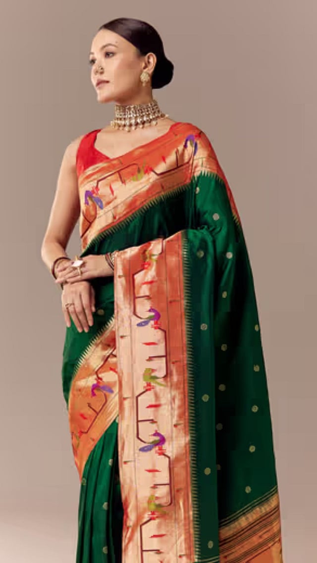हिरव्या रंगाची साडी ही सदाबहार असते, पण त्यावर योग्य रंगाचे ब्लाऊज निवडले तर तुमचा लूक अधिक खुलून दिसतो.