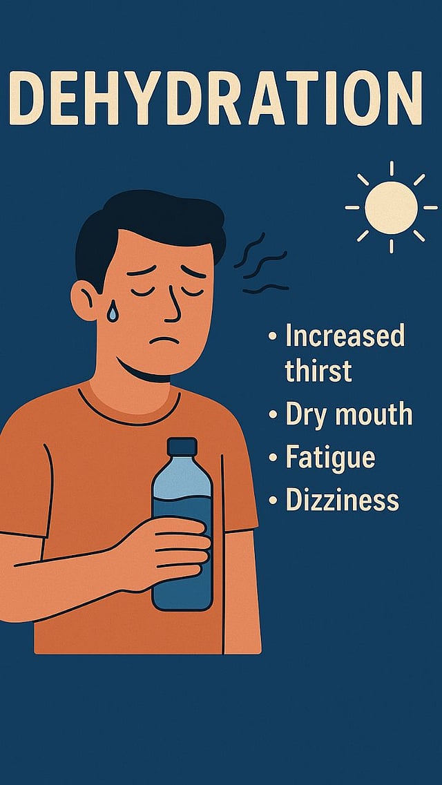 शरीरात पाणी कमी झाल्यावर तोंड आणि त्वचा कोरडी पडते.