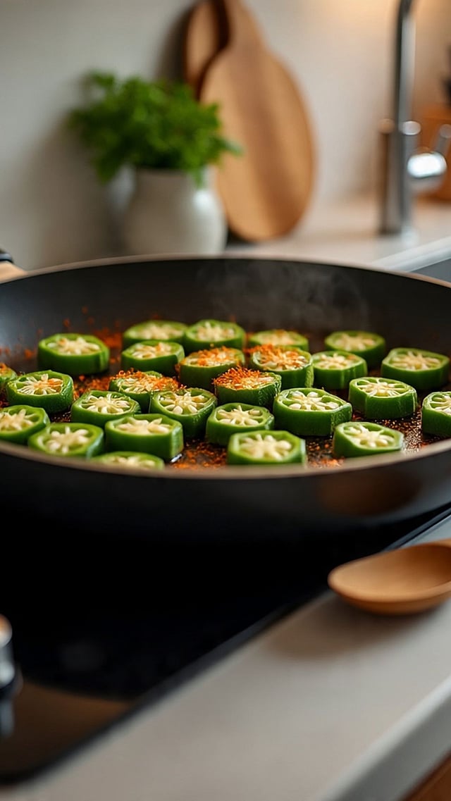 भेंडी किंचित कुरकुरीत होईपर्यंत शिजवा.