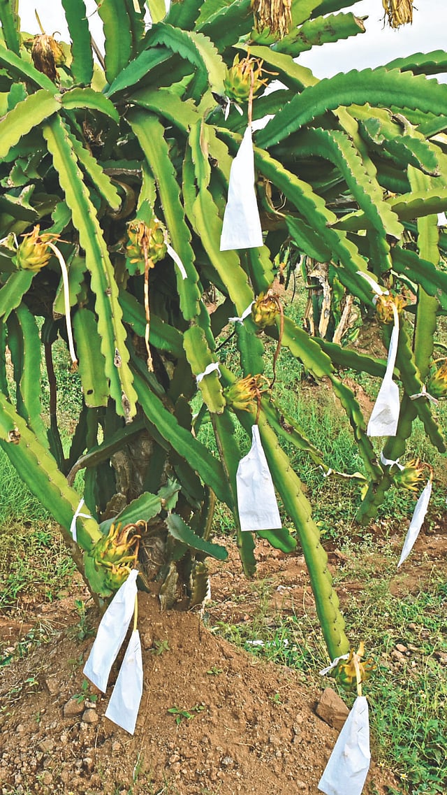 पावसाने भिजलेले ड्रॅगन फ्रूटचे फूल