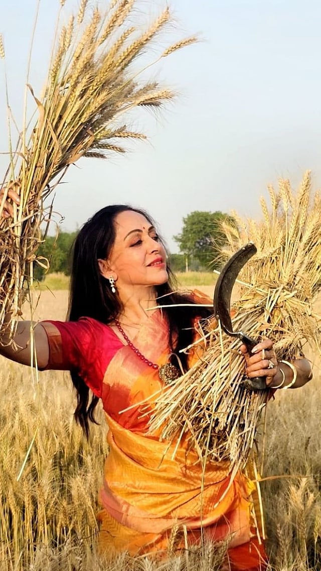 हेमा मालिनी यांनी आपल्या एक्स या मायक्रो ब्लॉगिंग वेबसाईटवर गव्हाची कापणी करतानाचे फोटो शेअर केले आहेत. यावेळी त्यांनी महिला शेतकऱ्यांशीही संवाद साधला.
