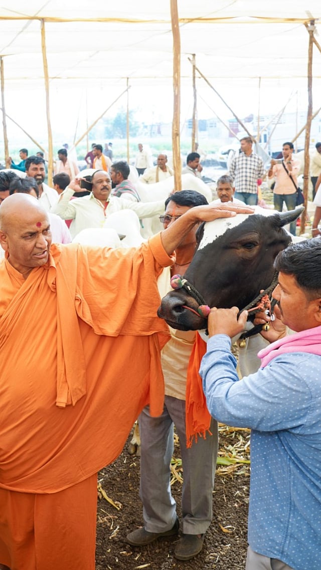 कणेरी (ता. करवीर) येथील (Kaneri) श्री सिद्धगिरी मठावर आयोजित सुमंगल सोहळ्यात देशी प्रजातींच्या गाय, म्हैस, बकरी, अश्व, गाढव, कुत्रे व मांजर यांचे अनोखे प्रदर्शन भरविण्यात आले.