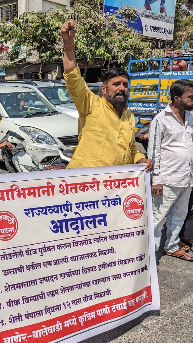 पुणे शहरातील बालेवाडी बाणेर मध्ये बालेवाडी फाटा येथे चक्काजाम करण्यात आला. शेतकऱ्यांच्या न्याय हक्कासाठी ऊस उत्पादक शेतकऱ्यांची एफ आर पी, महावितरण शेतकऱ्यांचे वीज कट करू नये.