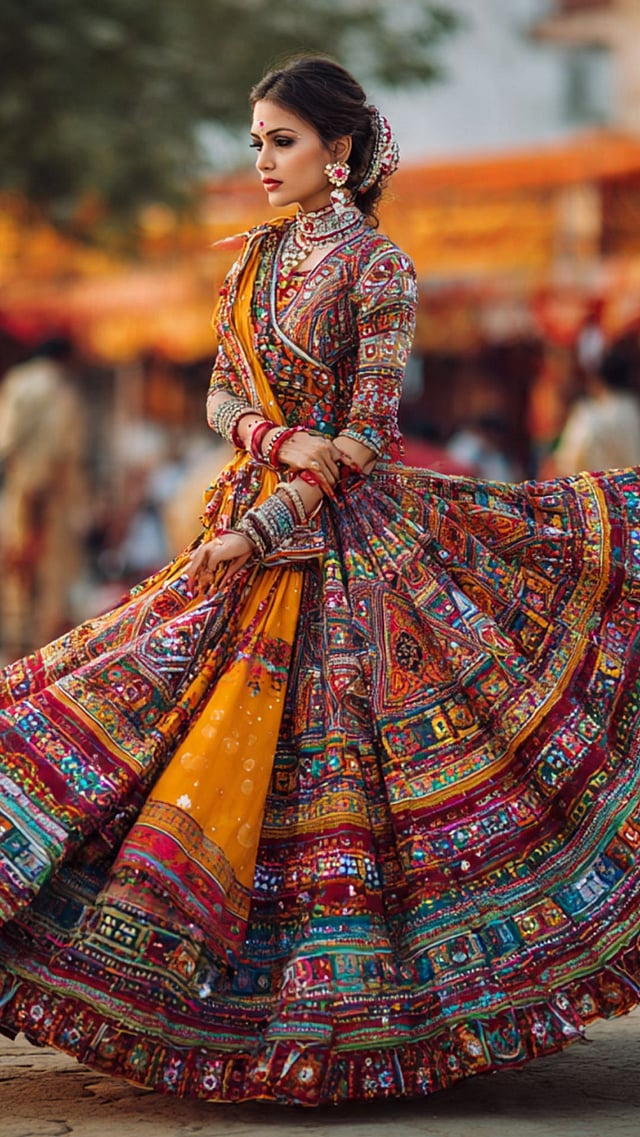 गरबा लूकसाठी मुलींनी जसे की घेरदार चोली आणि स्कर्ट किंवा लेहंगा परिधान करा.