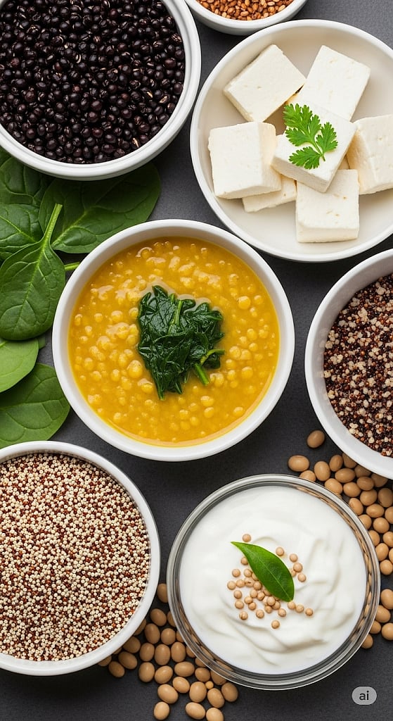 डाळी मसूर, चणे, आणि इतर कडधान्ये ,सर्व प्रकारच्या शेंगांमध्ये प्रथिने असतात.