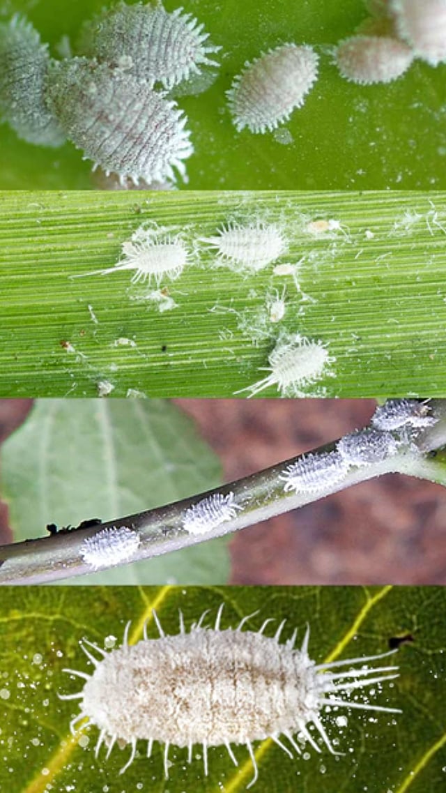 किडीचे मुख्यांग सुईसारखे असते. पिल्लाच्या शरीरावर एक आठवड्यानंतर पांढऱ्या लोकरीसारखे मेण तंतू येऊन संपूर्ण शरीर पांढरे दिसते.