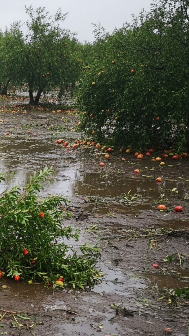 अतिवृष्टी, पूर आणि गारपीटीमुळे डाळिंबाची फळे, फांद्या व पाने बाधित होतात. नुकसान २५% ते १००% पर्यंत असू शकते.