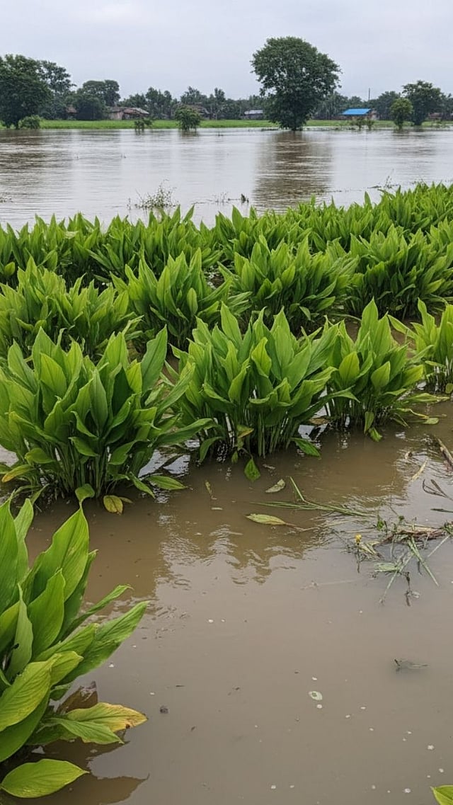 पाण्यात बुडालेल्या पानांवर पाण्याची फवारणी करून चिखल धुऊन टाका. यानंतर विद्राव्य खतांची व सूक्ष्म अन्नद्रव्यांची फवारणी करा.