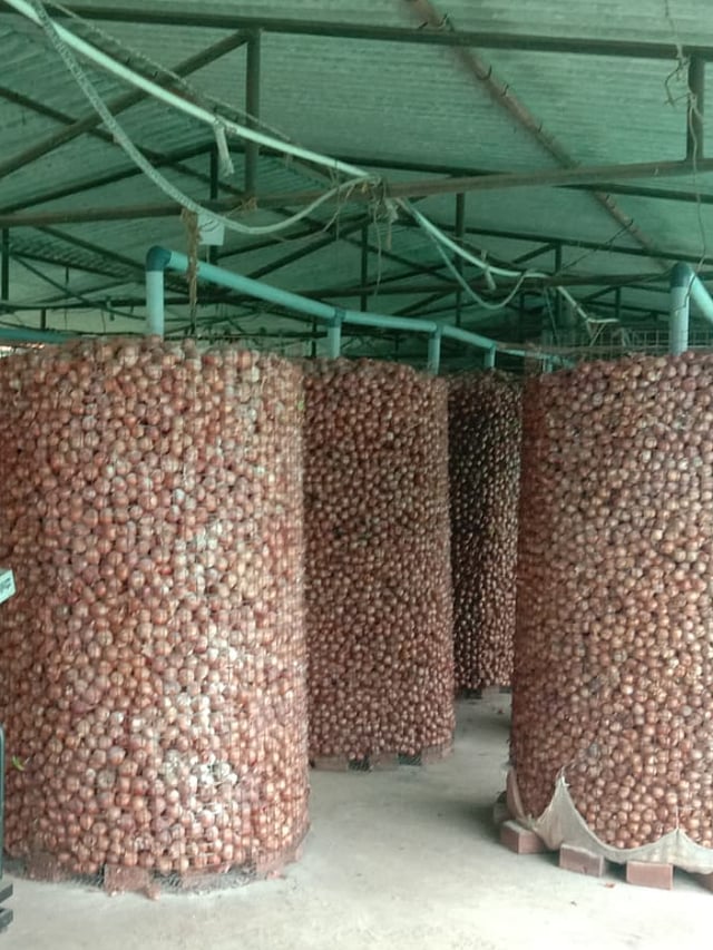 पायाजवळ (बेस) कोरड्या विटा व त्याही एकमेकांत पुरेसे अंतर असलेल्या आहेत. प्रति जाळीत १२०० ते १३०० किलो कांदा भरला जातो.