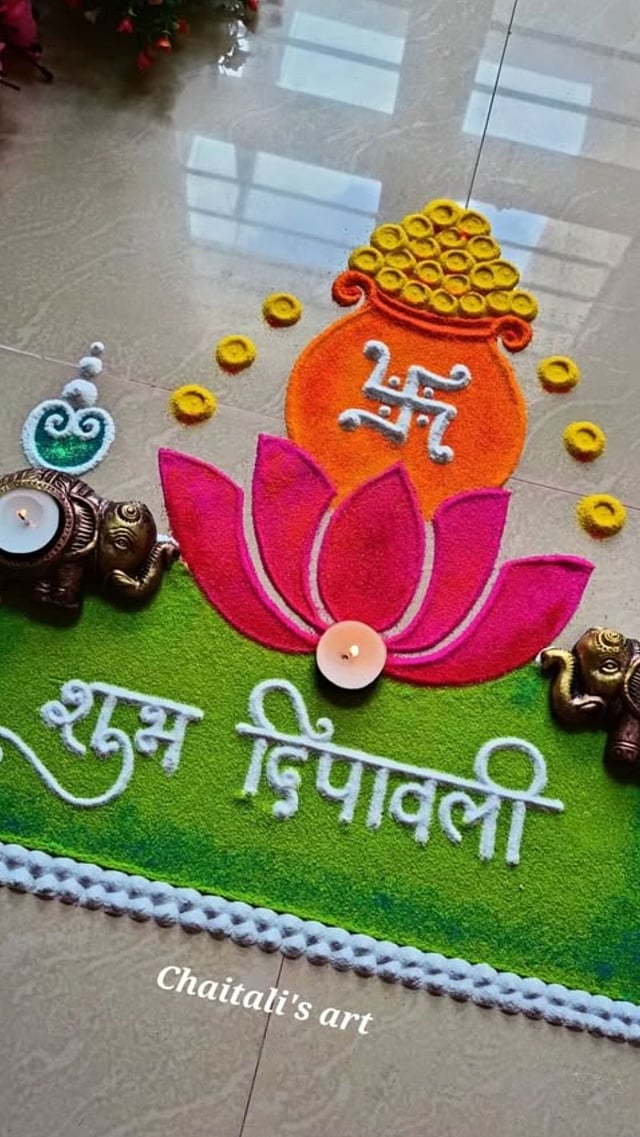 कमळाच्या पाकळ्यांच्या आकारात रांगोळी काढा. आणि त्याच्या मध्यभागी दिवा ठेवा.