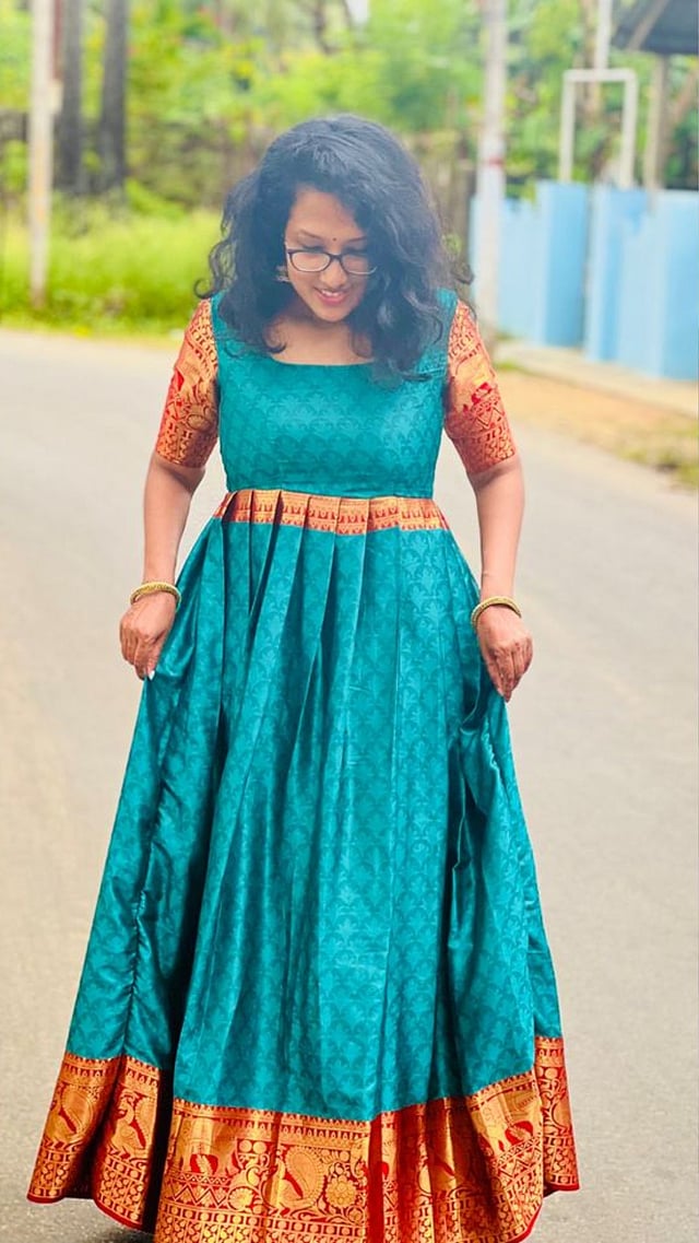 जर साडी पूर्णपणे चांगली असेल पण नेसायला बोअर वाटत असेल, तर त्यापासून एक फ्लोई अनारकली ड्रेस किंवा पार्टी वेअर गाऊन शिवून घ्या.