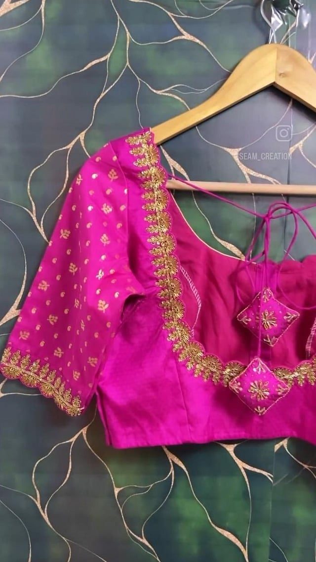 नेव्ही ब्लू किंवा रॉयल ब्लू साडीवर राणी गुलाबी रंगाचे ब्लाऊज खूपच रॉयल आणि उठावदार दिसते.