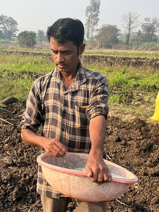तीन मजुरांच्या सहाय्याने त्यांनी पेरणी केलेली आहे पेरणीनंतर लगेच डीएपी खत त्यांनी दिलेले आहे साधारण चार पाणी पाटाने द्यावे लागेल असा त्यांचा अंदाज आहे.