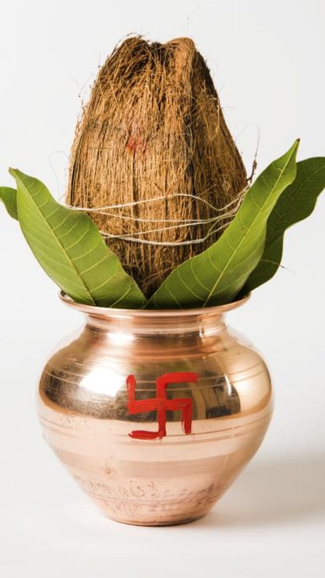 कलशात पुरेसे पाणी असावे, जेणेकरून त्यावर ठेवलेला नारळ भिजेल.