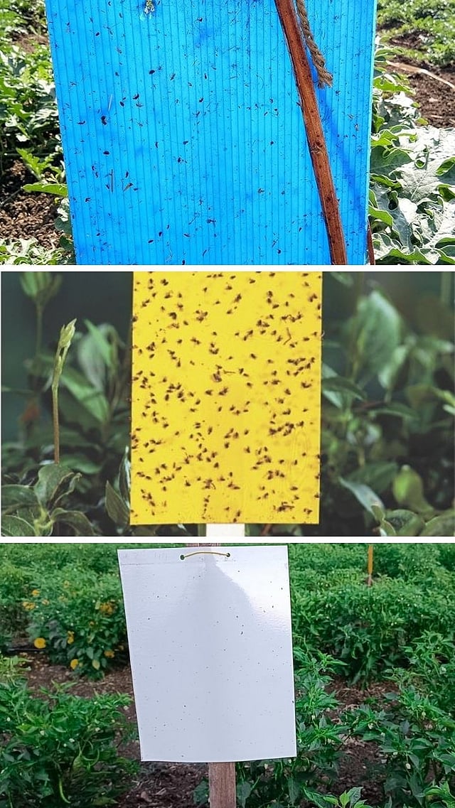 ७ ते १० दिवसांनी सापळे स्वच्छ करून पुन्हा चिकट पदार्थ लावावा. चिकट सापळे वापरल्यास किड नियंत्रण सोपे, स्वस्त आणि सुरक्षित होते.
