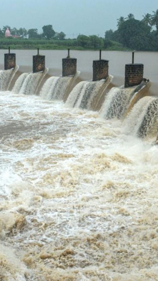 मंगळवारी दुपारपर्यंत जिल्ह्यात पावसाचा जोर कायम राहिला. त्यामुळे जिल्ह्यातील बहुतांश नद्यांमधून पाणी (River Water) पात्राबाहेर पडलं. जिल्ह्यातील विविध नद्यांवरील एकूण ७१ बंधारे दुपारी दोन वाजेपर्यंत पाण्याखाली गेले.