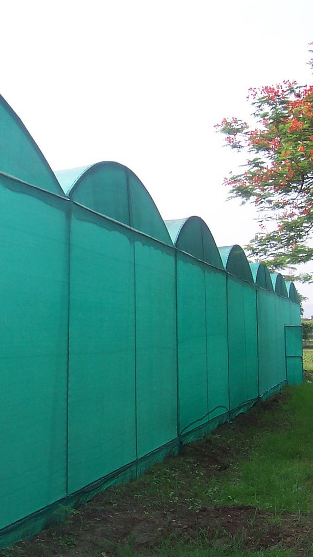 मोठ्या झाडांची सावली शेडनेटवर पडणार नाही याची काळजी घ्यावी. स्थानिक वाऱ्याची दिशा लक्षात घेऊन उभारणी करावी.