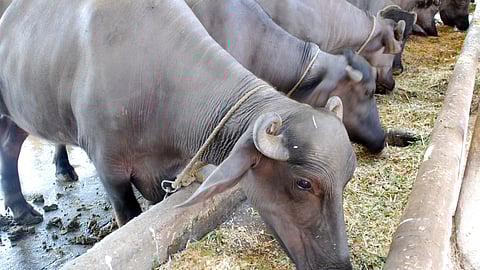 - दुभत्या म्हशीला पोषणासाठी रोज २ किलो खुराक दयावा. दुध उत्पादनाच्या ५० टक्के जास्तीचा खुराक दयावा. म्हणजे १० लिटर दुध देणा-या म्हशीस ५ किलो जास्तीचा खुराक दयावा. अशा प्रकारे २ + ५ = ७ किलो खुराक रोज सकाळ–संध्याकाळ निम्मा भाग दयावा.