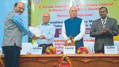 अकोला ः लम्पी स्कीन डिसीज (Lumpy Skin Decease) या नवख्या रोगाची साथ प्रथमच २०२० मध्ये महाराष्ट्रातील प्रामुख्याने विदर्भ व मराठवाडा या विभागातील बहुतांश जिल्ह्यात पसरली होती. या साथीच्या अनुषंगाने अकोला येथील स्नातकोत्तर पशुवैद्यक (Veterinary) व पशुविज्ञान संस्थेत प्रा. डॉ. अनिल भिकाने, प्रा. डॉ. सुनील वाघमारे, डॉ. रवींद्र हातझाडे व डॉ. किशोर पजई यांनी रोगाचा प्रादुर्भाव, लक्षणे व योग्य औषधोपचार पद्धती यावर संशोधन केले. यावरील शोध निबंधाचे अयोध्या (उत्तर प्रदेश) येथील आचार्य नरेंद्र देव कृषी विद्यापीठातील पशुवैद्यकीय महाविद्यालयात झालेल्या कार्यक्रमात वाचन करण्यात आले. या शोधनिबंधाला राष्ट्रीय पुरस्कार देऊन सन्मानित करण्यात आले.