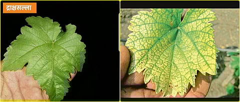 परिणाम झिंक, फेरस कमतरतेचे परिणाम आपण आधीही पाहिले आहेत. मॅग्नेशिअम हा क्लोरोफिल निर्मितीमधील मुख्य घटक असून, त्याच्या कमतरतेमुळे क्लोरोफिलची निर्मिती कमी होते. मण्यांची फुगवण कमी होते. उत्पादनात मोठी घट येते. उपाययोजना झिंक व फेरस संबंधी वर सुचविल्या प्रमाणे उपाययोजना कराव्यात. मॅग्नेशिअम कमतरता भरून काढण्यास मॅग्नेशिअम सल्फेट अडीच ग्रॅम प्रति लिटर पाणी या प्रमाणे चार दिवसांचे अंतराने तीन वेळा फवारणी करावी. एकरी पंधरा किलो मॅग्नेशिअम सल्फेट दर सात दिवसांनी असे तीन वेळा द्यावे. - वासुदेव चि. काठे, ९९२२७१९१७१ अशोक ना. पाटील, ९७६५२१९७९५ (दाभोलकर प्रयोग परिवार)