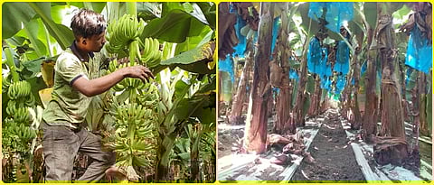 प्रेमानंद महाजन यांच्याकडे ६० एकरांत केळी पीक असून, त्यातील गेल्या मार्च, एप्रिल महिन्यांत लागवड केलेल्या सुमारे १८ एकर केळी बागेत निसवण वेगात सुरू आहे. त्यामुळे गेल्या दहा ते बारा दिवसांमध्ये फळांची काळजी घेतली जात आहे.