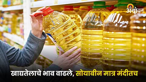 सोयाबीनचे भाव सोयापेंडच्या भावावर अवलंबून असतात. कारण सोयाबीनमध्ये ८२ टक्के पेंड असते, तर १८ टक्के तेल असते. पण सोयापेंडचे भाव आंतरराष्ट्रीय बाजारात आणि देशातही कमी आहेत. आंतरराष्ट्रीय पातळीवर सोयापेंडचे उत्पादन वाढले तर देशात उत्पादनवाढीचा अंदाज आणि मक्यापासून तयार होणाऱ्या डीडीजीएसचा दबाव सोयापेंडच्या भावावर आहे. यामुळे खाद्यतेलाचे भाव वाढूनही सोयाबीन भावात अपेक्षित सुधारणा झाली नाही.