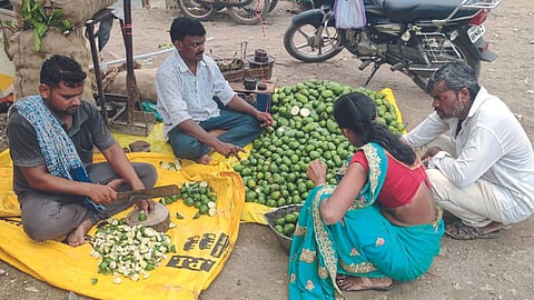 Yavatmal News : हवामानातील बदलाच्या परिणामी बाजारात लोणच्याच्या कैऱ्यांची आवक उशिरा सुरू झाली. आर्णी बाजारात देखील सद्यःस्थितीत लोणच्याकामी लागणाऱ्या कैऱ्यांची आवक वाढत आहे. त्यांना ५५ ते ६० रुपये किलोचा दर मिळत आहे.