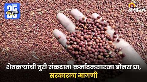 Pune News: महाराष्ट्र सरकारने हमीभावाने २ लाख ९७ हजार टन तूर खरेदीला परवानगी दिली. पण सरकारने कर्नाटकप्रमाणे तुरीसाठी बोनसही जाहीर करावा, अशी मागणी शेतकरी करत आहेत. कर्नाटकने हमीभावार ४५० रुपये बोनस दिला आहे. त्यामुळे कर्नाटकमधील शेतकऱ्यांना हमीभाव ७ हजार ५५० रुपये आणि बोनसचे ४५० रुपये, असा एकूण ८ हजार रुपये भाव मिळणार आहे. महाराष्ट्र सरकारनेही शेतकऱ्यांना ८ हजार रुपये भाव देण्याची मागणी शेतकरी करत आहेत.