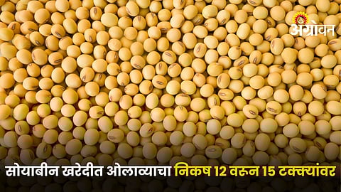 Nagpur News : खाद्यतेलाच्या आयात शुल्कात वाढीनंतरही सोयाबीनचे दर वाढले नाहीत. त्यामुळे सोया पेंड निर्यात अनुदानाची मागणी होत असताना त्याऐवजी सरकारने हमीभावाने खरेदीसाठी ओलाव्याचे प्रमाण १२ टक्क्यांवरून १५ टक्के करण्याचा निर्णय घेतला आहे. शुक्रवारी (ता. १५) त्यासंबंधीची अधिसूचना काढण्यात आली. सरकारच्या या निर्णयामुळे शेतकऱ्यांना दिलासा मिळेल, अशी शक्यता वर्तविली जात आहे.