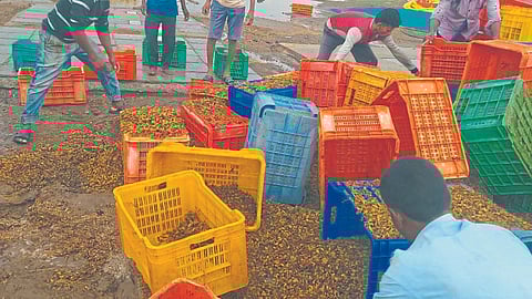 Sangli News : कवठेमहांकाळ तालुक्यातील नागज परिसरात बेदाणा निर्मितीची (Raisin Production) लगबग सुरु होती. अचानक वादळी वाऱ्यासह जोरदार पाऊस झाला. अन् एका क्षणात सुमारे लाखो रुपयांचा एक हजार टन बेदाणा भिजला. त्यामुळे पंचनामे करून त्याची भरपाई द्यावी, अशी मागणी बेदाणा उत्पादकांनी केली आहे.