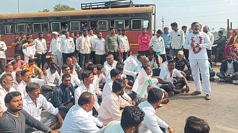स्वाभिमानी शेतकरी संघटनेने शनिवारी (ता.९) नाशिक - छत्रपती संभाजी नगर महामार्गावर रास्ता रोको केले. निर्यातबंदी मागे घ्यावी, अन्यथा नाशिक जिल्ह्यातील एक किलोही कांदा बाहेर जाऊ देणार नाही, असा इशारा संघटनेचे जिल्हाध्यक्ष निवृत्ती गारे यांनी दिला.