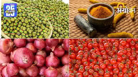 या सप्ताहात कापूस, हळद, मूग, कांदा व टोमॅटो यांचे भाव घसरले; इतर शेतीमालाचे भाव वाढले. कांद्याचे भाव रु. १,१३८ वर आले आहेत, तर टोमॅटो रु. १,००० पर्यंत घसरला आहे. हरभऱ्याचे भाव ३.४ टक्क्यांनी वाढले. अमेरिकेतील कापसाचे भाव १.५२ टक्क्यांनी वाढले, तर सोयाबीनचे भाव ०.४८ टक्क्यांनी घसरले.
