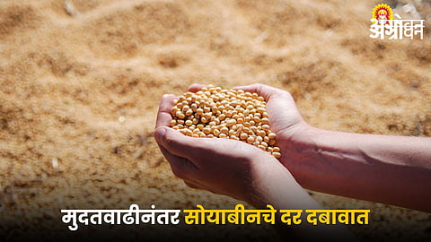 राज्यात बारदान्याअभावी ठप्प झालेली सोयाबीन खरेदीची मुदत १२ जानेवारी रोजी संपल्यानंतर पुन्हा एकदा केंद्र सरकारने ३१ जानेवारीपर्यंत खरेदीस मुदतवाढ दिली. तरीही स्थानिक बाजारात सोयाबीनच्या दरात घसरण सुरूच आहे.