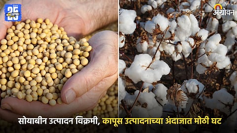 Pune News: देशात यंदा सोयाबीनचे उत्पादन विक्रमी पातळीवर पोचून १५१ लाख टन झाले, तर कापूस उत्पादनात मोठी घट होऊन २९४ लाख गाठींपर्यंत कमी झाले. तसेच भात, गहू, मका, भुईमूगाचे उत्पादनही विक्रमी पातळीवर पोचले आहे. गव्हाचे उत्पादनही विक्रमी १ हजार १५४ लाख टन होईल, तसेच तूर उत्पादन ३५ लाख टन आणि हरभरा उत्पादन ११५ लाख टनांवर होण्याची शक्यता आहे, असा अंदाज केंद्र सरकारने व्यक्त केला.