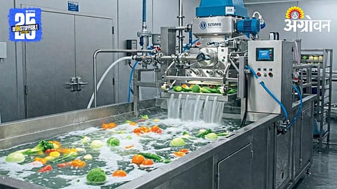 कन्व्हेअर बेल्टद्वारे स्वच्छ झालेली फळे व भाज्या पुढील प्रक्रियेसाठी हलविल्या जातात.