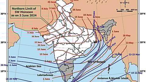केरळमध्ये मॉन्सून वेळेआधी (३० जून) दाखल झाल्यानंतर मॉन्सूनची वाटचाल सुरूच आहे. रविवारी (ता. २) दक्षिण कर्नाटक, आंध्र प्रदेशासह बंगालच्या उपसागराच्या आणखी काही भागात प्रगती केली होती.