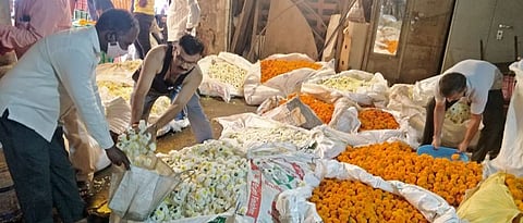 श्रावण महिना सुरू झाल्याने पुणे गुलटेकडी येथील छत्रपती शिवाजी महाराज मार्केटमधील फूल बाजारात विविध फुलांना मागणी व आवक वाढत आहे. सध्या शेवंतीला अधिक मागणी असून सरासरी २५ ते ३० रुपये प्रति किलो दराने विक्री सुरू आहे. कोरोना संकटातील दोन वर्षे फूल उत्पादकांसाठी असमाधानकारक राहिली. मात्र यंदा मार्केट बऱ्यापैकी राहून चांगला फायदा मिळण्याची शेतकऱ्यांना आशा आहे. श्रावण महिना सुरू झाला आहे. इथूनपुढच्या काळात विविध सणांना सुरवात होते. साहजिकच विविध प्रकारच्या फुलांनाही मागणी वाढू लागते. पुणे, नगर व सातारा जिल्ह्यातील काही भाग फूलशेतीसाठी प्रसिद्ध आहेत. पुणे येथील गुलटेकडी मार्केटला सध्याच्या काळात झेंडू, ॲस्टर, शेवंती, काप्री, बिजली, लिली, जुई आदी विविध फुलांची आवक सुरू आहे. शेवंती दररोज १०० ते १२० क्विंटल या प्रमाणात मार्केटमध्ये दाखल होत आहे. रविवारी (ता.. ८) १२७ क्विंटल आवक झाली. फुलांना प्रति किलो सरासरी २५ रुपये र मिळाला. त्यातून सुमारे ३ लाख २५ हजार रुपयांची उलाढाल झाली. चार ते पाच दिवस टिकवणक्षमता असल्याने शेवंती खरेदी करण्याकडे ग्राहकांचा कल अधिक असतो. येणाऱ्या सणांच्या काळात शेवंती अधिक भाव खाणार आहे. त्यामुळे दरात किलोमागे ५ ते २० रुपयांपर्यंत वाढ होण्याचा अंदाज व्यापाऱ्यांचा आहे. त्यातून शेतकऱ्यांना कोरोना संकटाच्या काळात काही प्रमाणात दिलासा मिळेल. शेवंतीला सणात मागणी शेवंतीच्या फुलांना बाराही महिने चांगले दर असतात. गणेशोत्सव, दसरा, दिवाळी या काळात ही मागणी व दरही अधिक असतात. उन्हाळ्यात लग्न कार्ये असल्यानेही शेवंतीची आवक सुरूच असते. अर्थात या काळात फुलांचे उत्पादन कमी असते. त्यामुळे दर अधिक असतात. चालू वर्षी कोरोना संकटामुळे ग्राहकांची संख्या कमी झाल्याने फुलांना उठाव कमी आहे. त्यामुळे अपेक्षित दर मिळत नाही. पर्यायाने शेतकऱ्यांना अल्प समाधान मानावे लागत आहे. पांढऱ्या फुलांची सर्वाधिक विक्री सध्या पुणे मार्केटमध्ये पांढऱ्या शेवंतीची आवक मोठ्या प्रमाणात आहे. या फुलांना पुणे शहरातील किरकोळ व्यापाऱ्यांकडून चांगली मागणी आहे. प्रति किलो १०० ते १२० या दरांप्रमाणे ते ग्राहकांना हार व सुट्या फुलांची विक्री करतात. सद्यःस्थितीत दर सर्वसाधारण असण्याची कारणे
