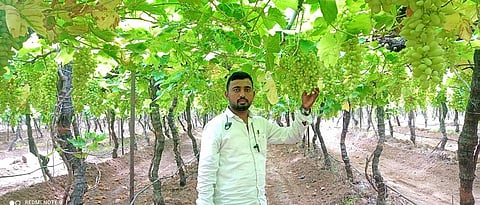 मुर्ठा (ता. तुळजापूर, जि. उस्मानाबाद) येथील युवा शेतकरी गोपाळ सुरवसे वडिलांच्या द्राक्षशेतीचा जुना वारसा पुढे चालवीत ७५ एकरांत दर्जेदार उत्पादन घेत आहेत. ५० टक्के प्रत्येकी रासायनिक व सेंद्रिय व्यवस्थापनाद्वारे उत्पादन साधून एकूण क्षेत्रातून शंभर टनांहून अधिक निर्यात साधली आहे. सोलापूर- हैदराबाद महामार्गावर नळदूर्गच्या उत्तरेला मुर्ठा गावात (ता. तुळजापूर, जि. उस्मानाबाद) गोपाळ सुरवसे यांची वडिलोपार्जित सुमारे शंभर एकर शेती आहे. त्यात ७५ एकरांत द्राक्ष बाग आहे. पैकी जुनी सुमारे ५५ एकर आणि नवी २० एकर आहे. पाच एकर टोमॅटो आणि अन्य क्षेत्रावर गूळ प्रकल्प आहे. गोपाळ यांचे वडील सत्यवान यांना सुमारे ३५ वर्षांचा द्राक्षशेतीचा अनुभव आहे. गोपाळ यांच्यावरही लहानपणापासूनच शेतीचे संस्कार झाले. पदवीनंतर त्यांनी शेतीलाच पसंती दिली. वडिलांसह आई पवित्रा, पत्नी प्रतीक्षा आणि छोटा भाऊ विक्रम यांच्या मदतीने ते पूर्णवेळ द्राक्षशेतीत रमले आहेत. सेंद्रिय पद्धतीवर अधिक भर सुरवसे गूळ प्रकल्पाकडे वळले त्यावेळी खर्चाचा आकडा वाढला आणि ते आर्थिकदृष्ट्या अडचणीत आले. त्यातून मार्ग काढण्यासाठी द्राक्षशेतीतील खर्च कमी करण्याचा निर्णय घेतला. मग प्रत्येकी ५० टक्के रासायनिक व सेंद्रिय पद्धतीने काम सुरू केले. रासायनिक खतांचा वापर पूर्ण थांबवून केवळ रासायनिक कीडनाशकांचा वापर करतात. सन २०१९ मध्ये ५५ एकरांत ३०० टन म्हणजे एकरी साडेपाच टनांच्या दरम्यान उत्पादन मिळाले. तुलनेने ते कमी असले तरी दर व उत्पन्न चांगले मिळाले. मात्र प्रयोगांबाबत आत्मविश्वास वाढला. तेव्हापासून अभ्यासातून चुका सुधारत, अनुभवी शेतकऱ्यांचे मार्गदर्शन घेत गोपाळ दर्जेदार उत्पादन घेत आहेत. द्राक्ष बाग नियोजन दृष्टिक्षेपात