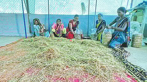 धिंगरी अळिंबी उत्पादनात माध्यम म्हणून वापरला जाणारा कच्चा माल भाताचे तणस, गहू भुस्सा स्थानिक पातळीवर मुबलक प्रमाणावर आहे. या सर्व बाजू अभ्यासून आत्मा आणि कृषी विज्ञान केंद्राच्या वतीने गेल्या तीन वर्षांपासून धिंगरी अळिंबी उत्पादनासंबंधी आदिवासी महिलांना स्वयंरोजगाराचा मार्ग मिळाला. सुरुवातीला हे कामकाज घरगुती होते. मात्र गेल्या वर्षापासून एकत्रितपणे उत्पादन व विक्रीला सुरुवात झाली.