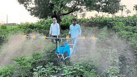 या वर्षीचे त्यांनी एका खासगी कंपनीचे फवारणी यंत्र विकत घेतले असून, त्या स्वतःच्या गरजेनुसार नोझलची रचना केली आहे.