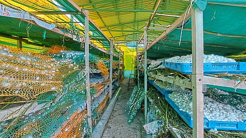 -दोन एकरांत व्ही- वन तुतीचे वाण. ५० बाय २८ फूट आकाराची दोन शेड्स. त्याआधारे वर्षातून ८ ते ९ बॅच घेतल्या जातात.